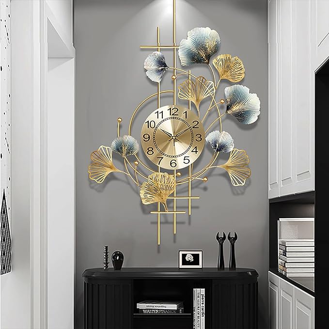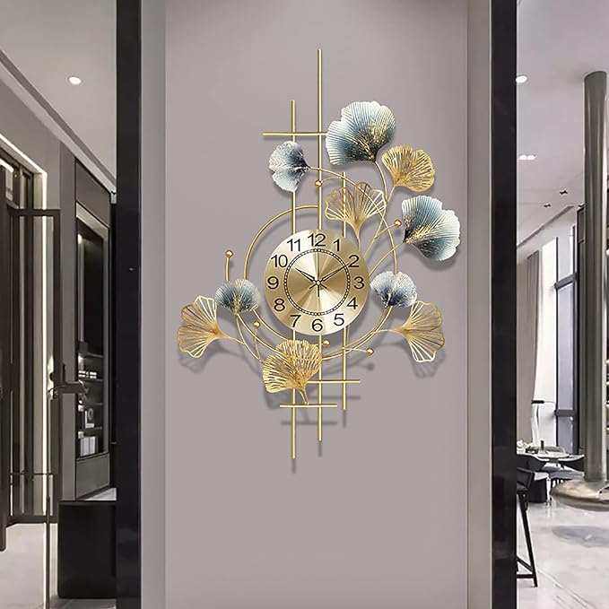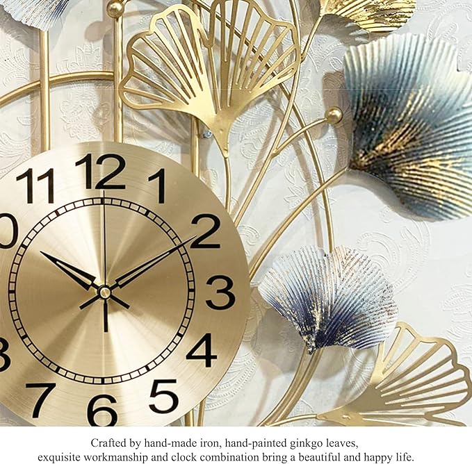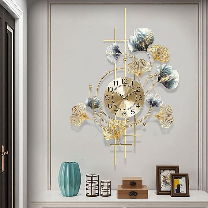 Metal Wall Clock For Living Room Home Ginkgo Leaf Silent Quartz Clock Wall Decoration